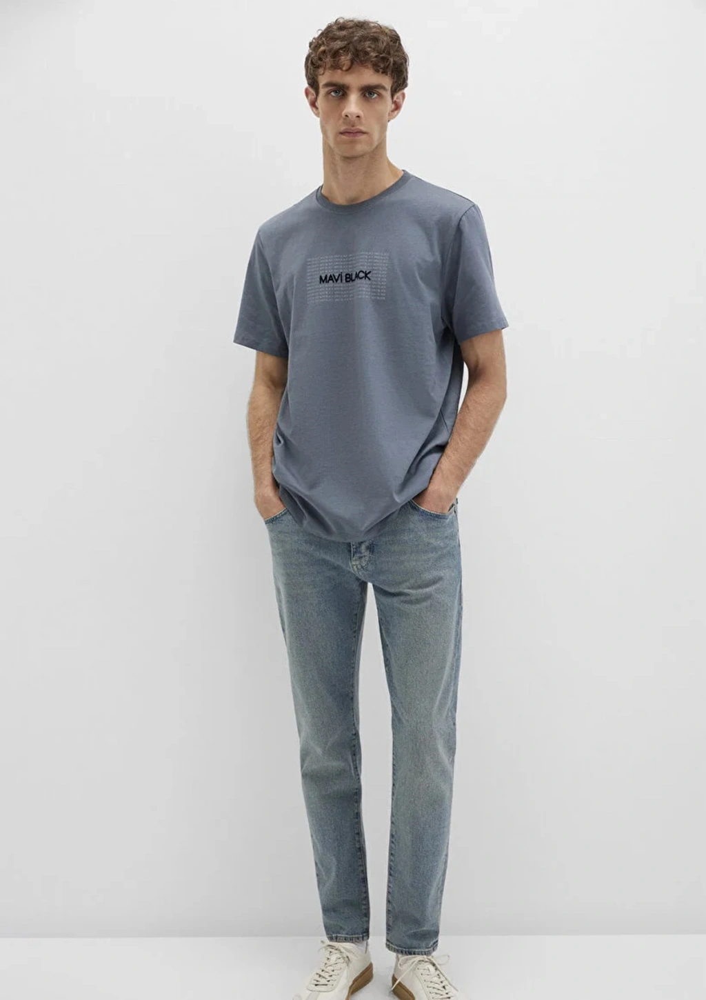 Mavi 0613130 0 Yaka Erkek Tshirt - Beyaz