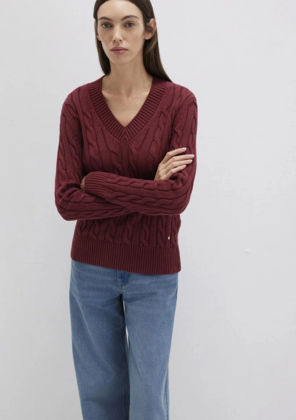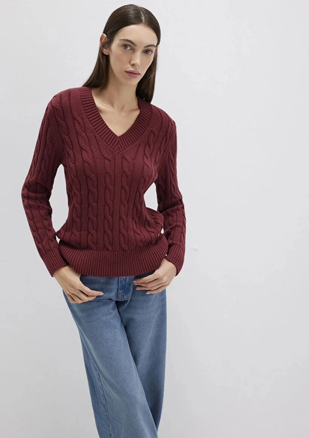 Mavi 1710720 V Yaka Kadin Triko - Bordo