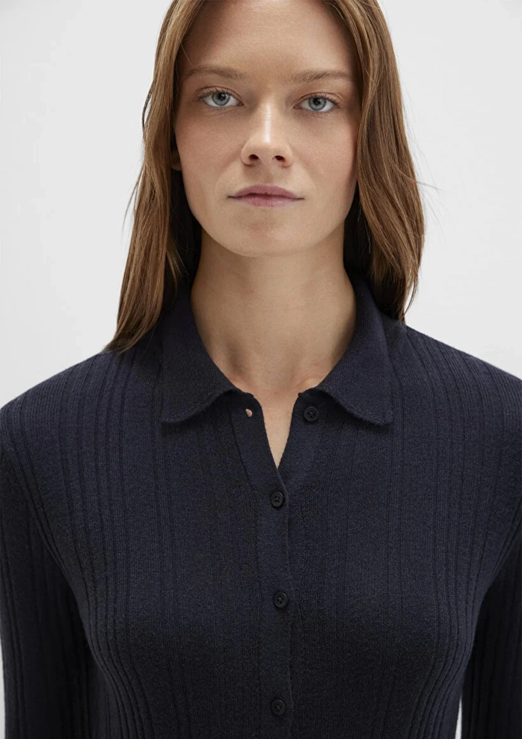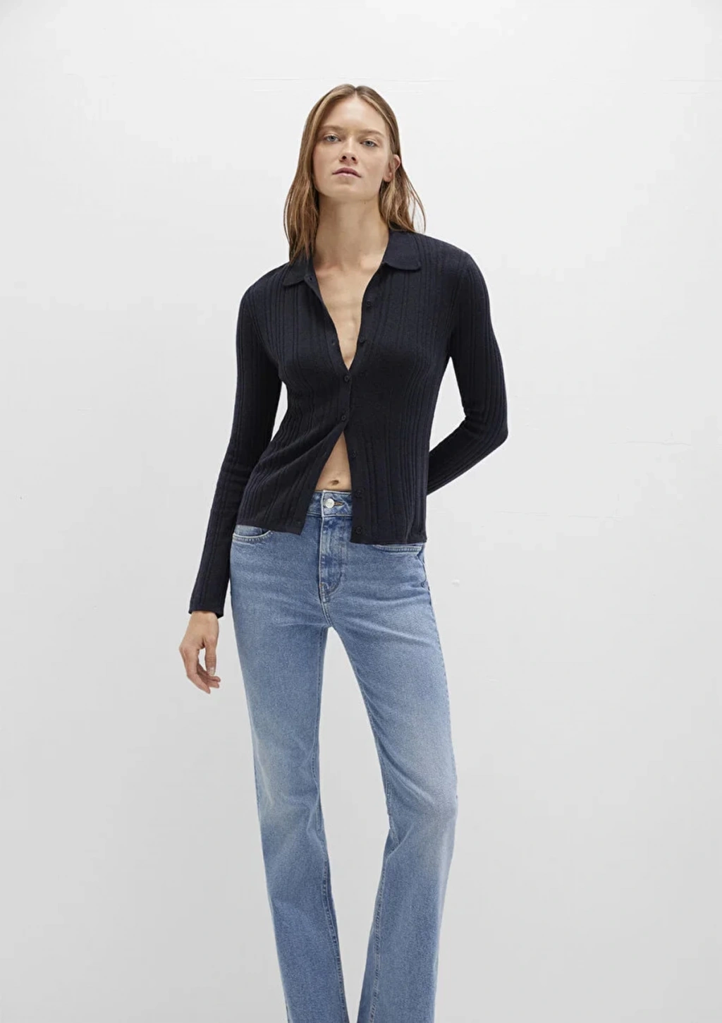 Mavi 1710838 Yakali Komple Dugmeli Kadin Triko - Siyah